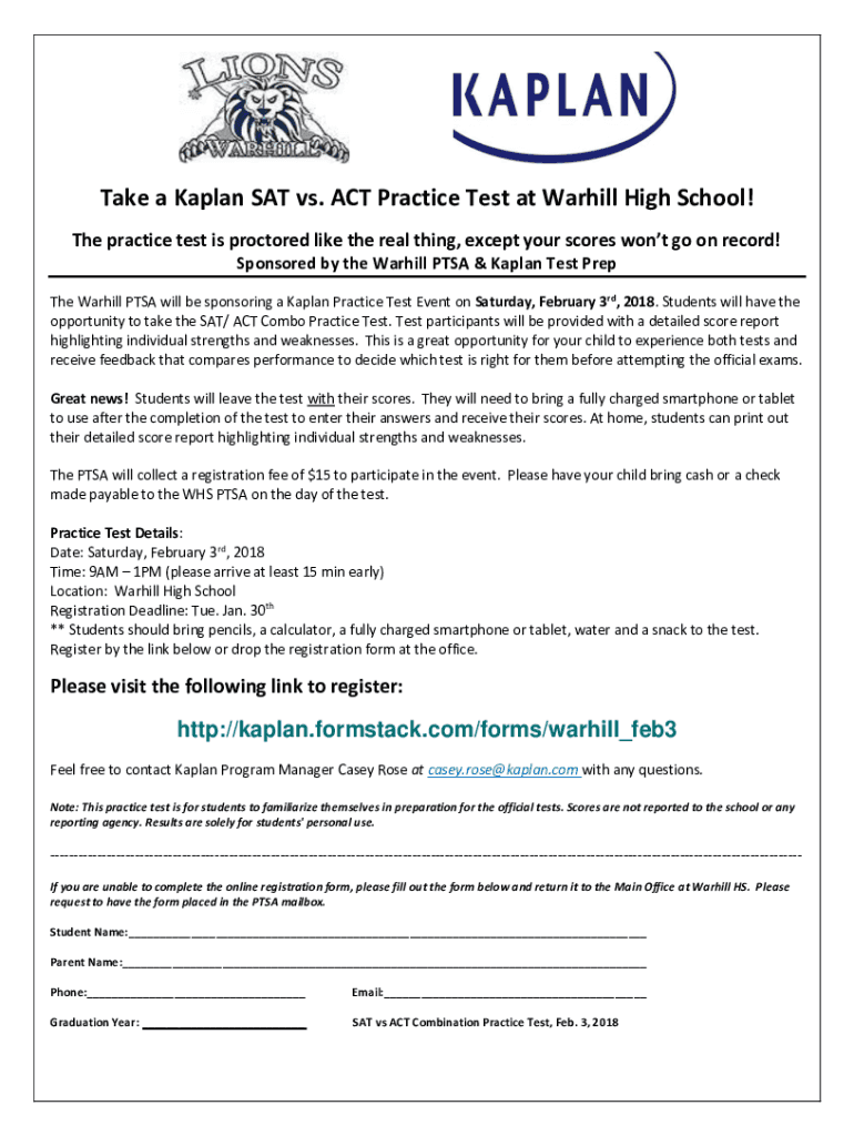 Get the free Take a Kaplan SAT vs. ACT Practice Test at Warhill High ...