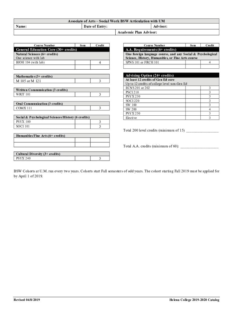 Get the free Associate of ArtsSocial Work BSW Articulation with UM ...