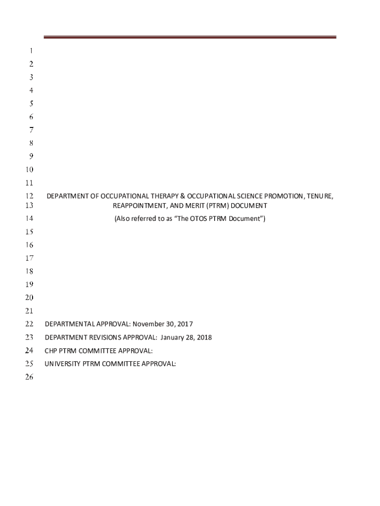 DEPARTMENT OF OCCUPATIONAL THERAPY & OCCUPATIONAL SCIENCE PROMOTION, TENURE, REAPPOINTMENT, AND MERIT (PERM) DOCUMENT (Also referred to as The OTIS PERM Document)DEPARTMENTAL APPROVAL: November 30,