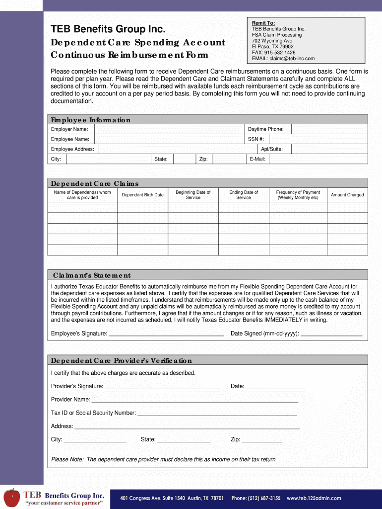 Key Features of the Dependent Care Continuous Reimbursement Form