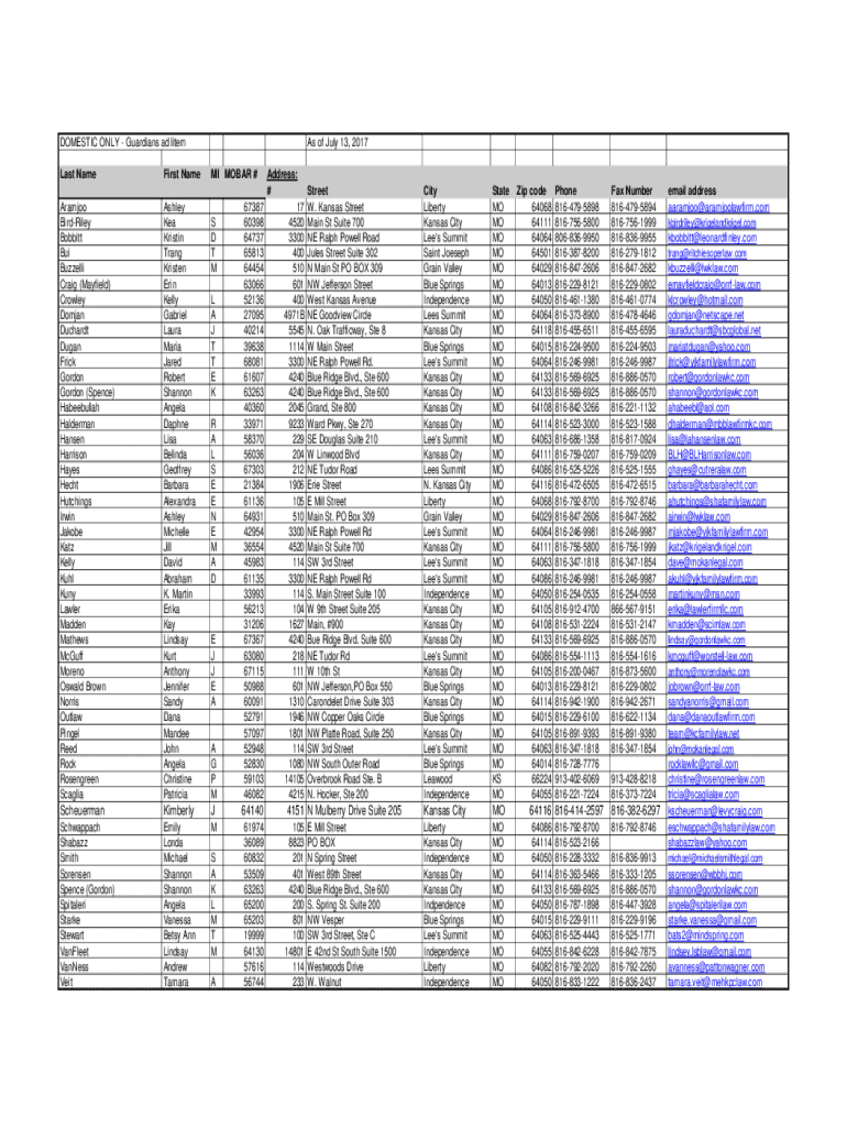 Get the free DOMESTIC ONLY - Guardians ad litem