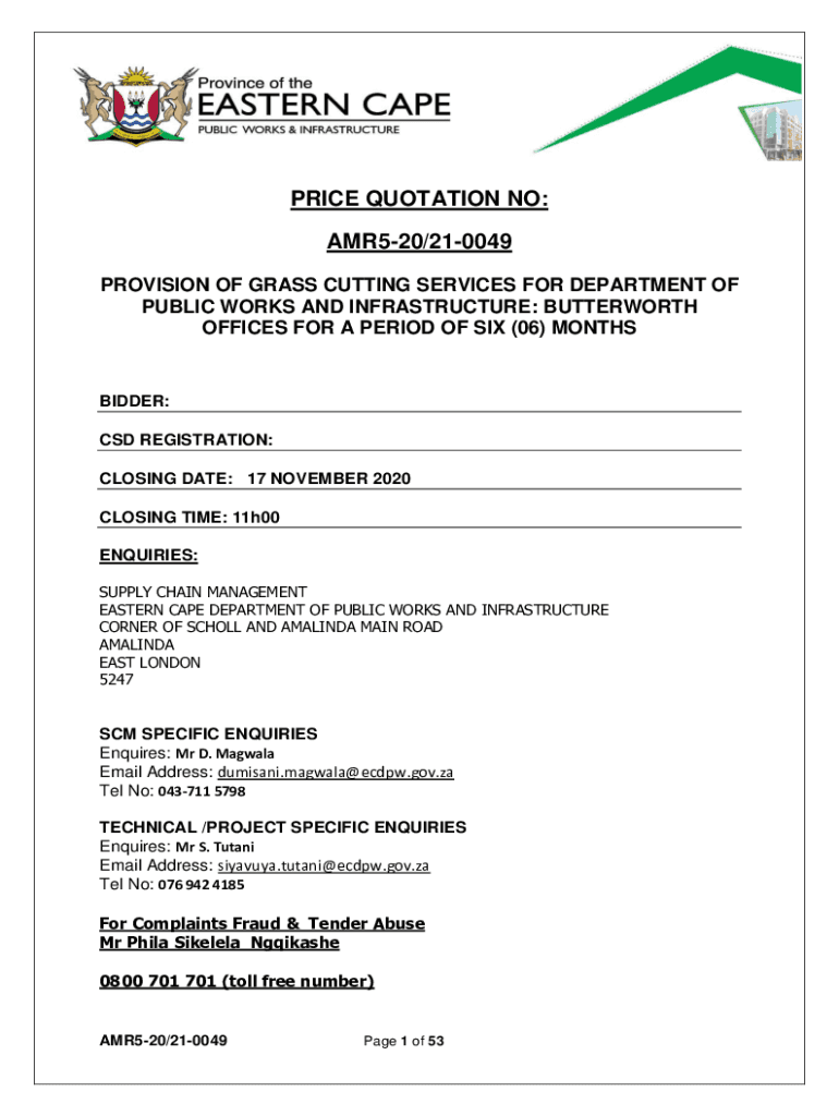 PROVISION OF GRASS CUTTING SERVICES FOR DEPARTMENT OF