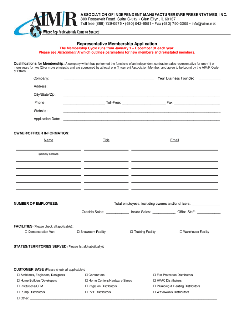 ASSOCIATION OF INDEPENDENT MANUFACTURERS/REPRESENTATIVES, INC. 800 Roosevelt Road, Suite C312 Glen Ellyn, IL 60137 Toll free (866) 7290975 (630) 9426581 Fax (630) 7903095 info air.net Representative
