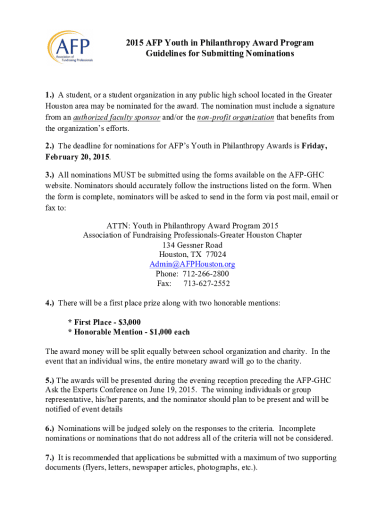 2015 AFP Youth in Philanthropy Award Program
