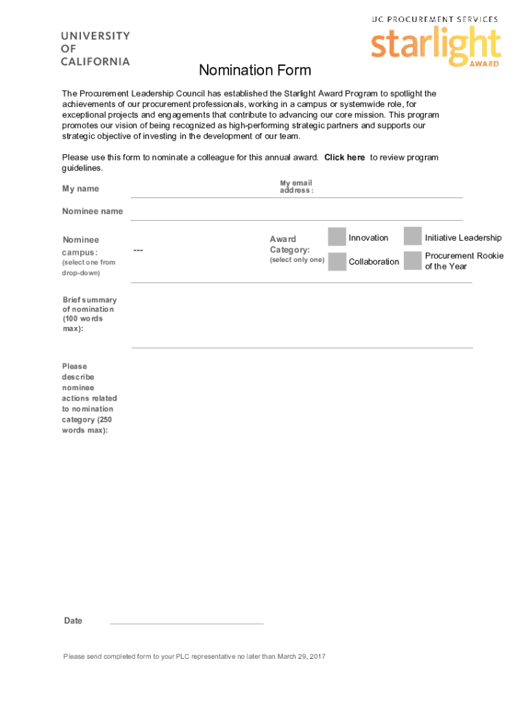 Get the free Nomination Form - University of California, Office of the ...