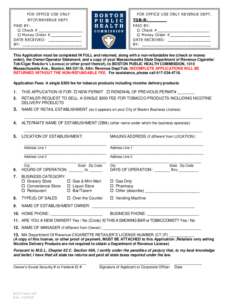 Get the free BTCP Location and Sales of Tobacco Products Form 103. Permit Application