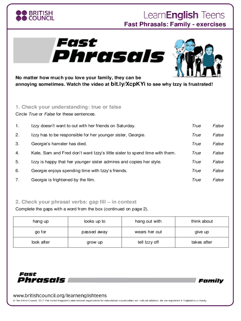 Get the free PDF Fast Phrasals: Family - exercises - British Council LearnEnglish Teens