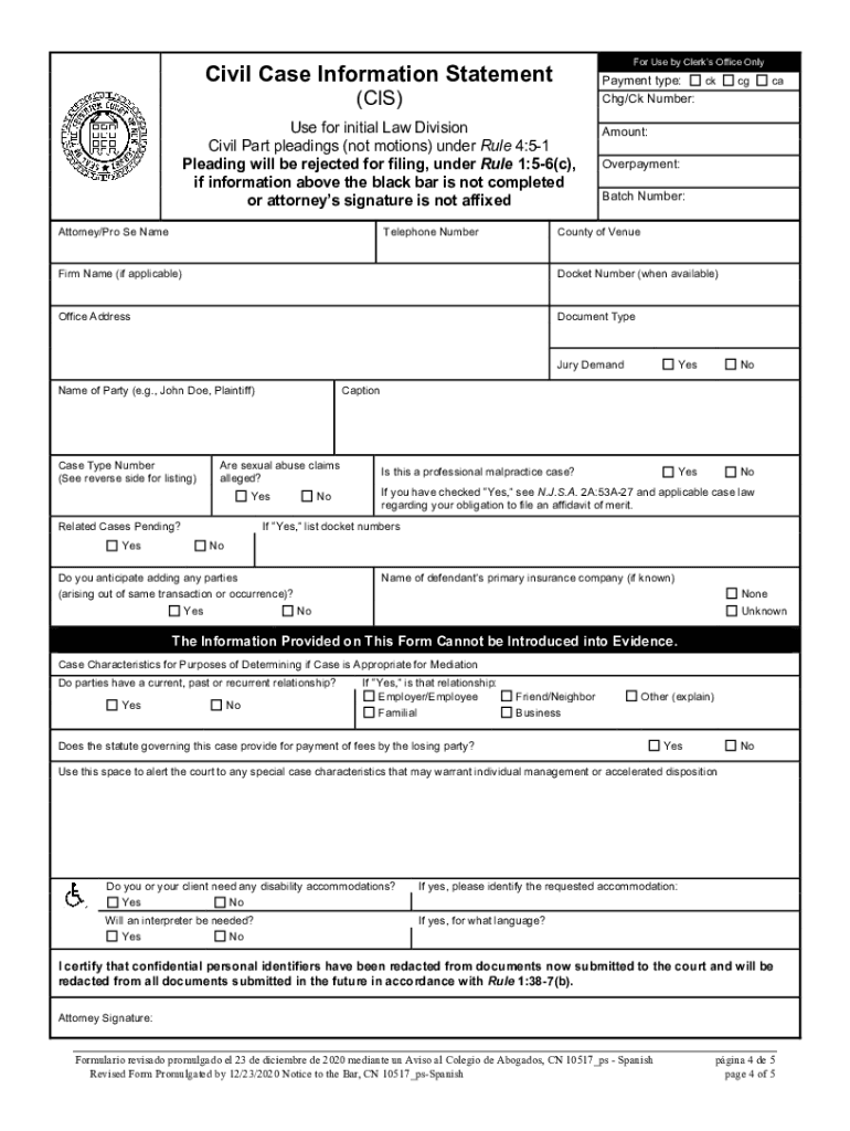 Civil Each Declaration informative par alas Causes 23 de December de 2020Cmo completer la declaration informative para causes civil BS (Civil Case Information Statement o CIS) How to Complete the