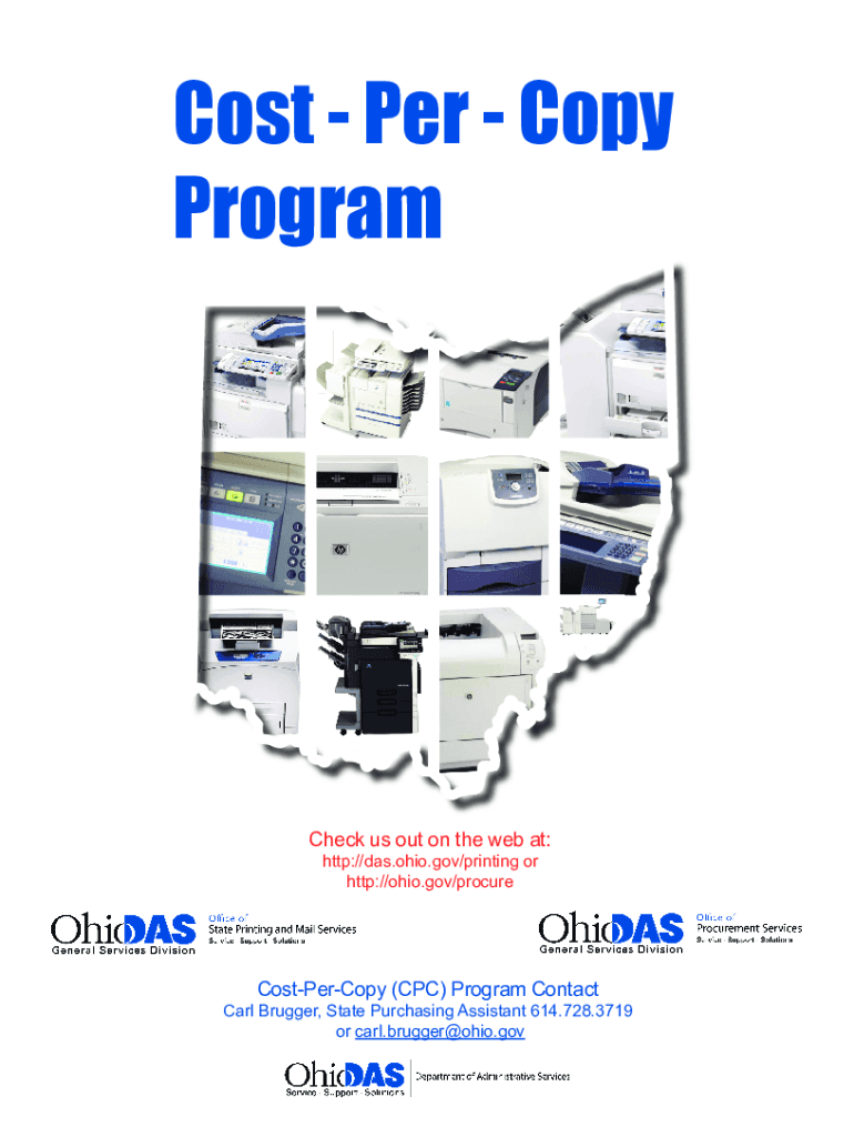 Cost Per Copy ProgramCheck us out on the web at: http://das.ohio.gov/printing or http://ohio.gov/procureCostPerCopy (CPC) Program Contact Carl Rugger, State Purchasing Assistant 614.728.3719 or Carl.