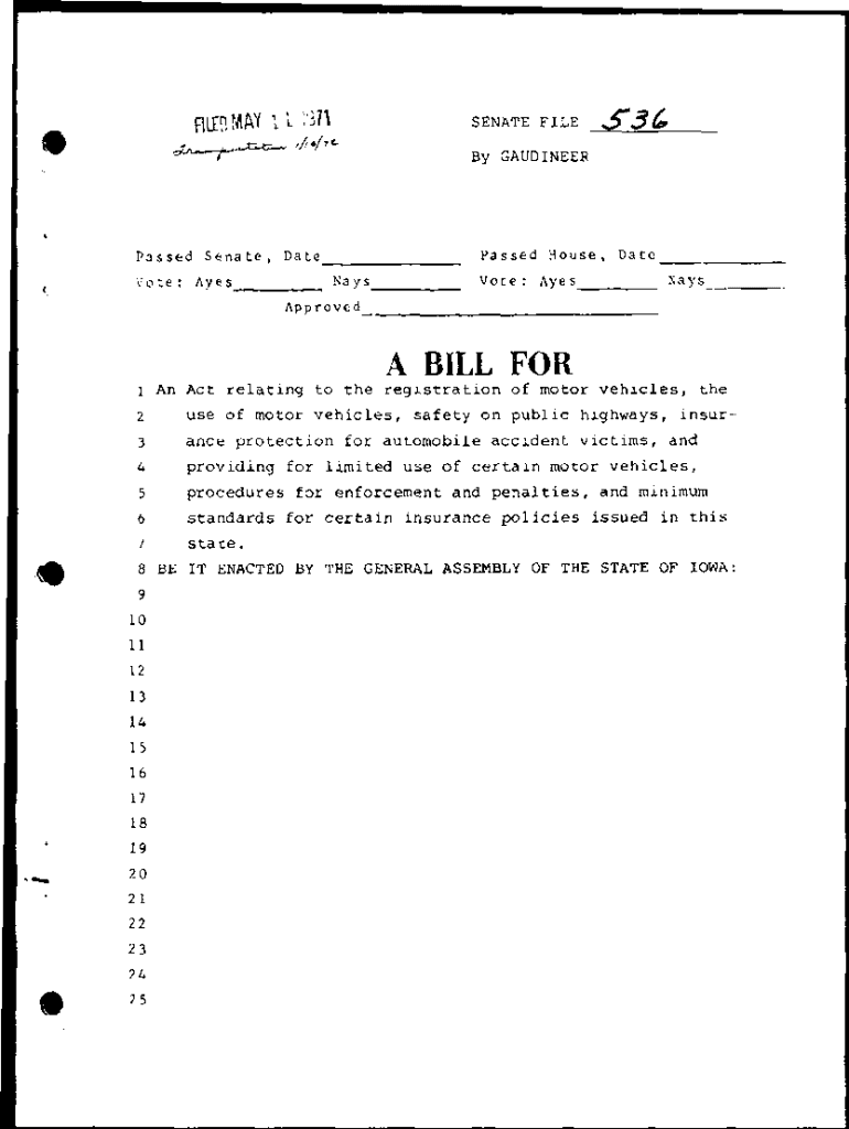 File MP. '(I. d. AJT......c::. Passed “, :one: '; 'Senate FILE, ;,.j, 'By GAUDINEERSenate, Date Ayes Nay s Passed House, Vote:DS the, yes); a) s approved BILL FOR 1 An Act relating to thevehcles,