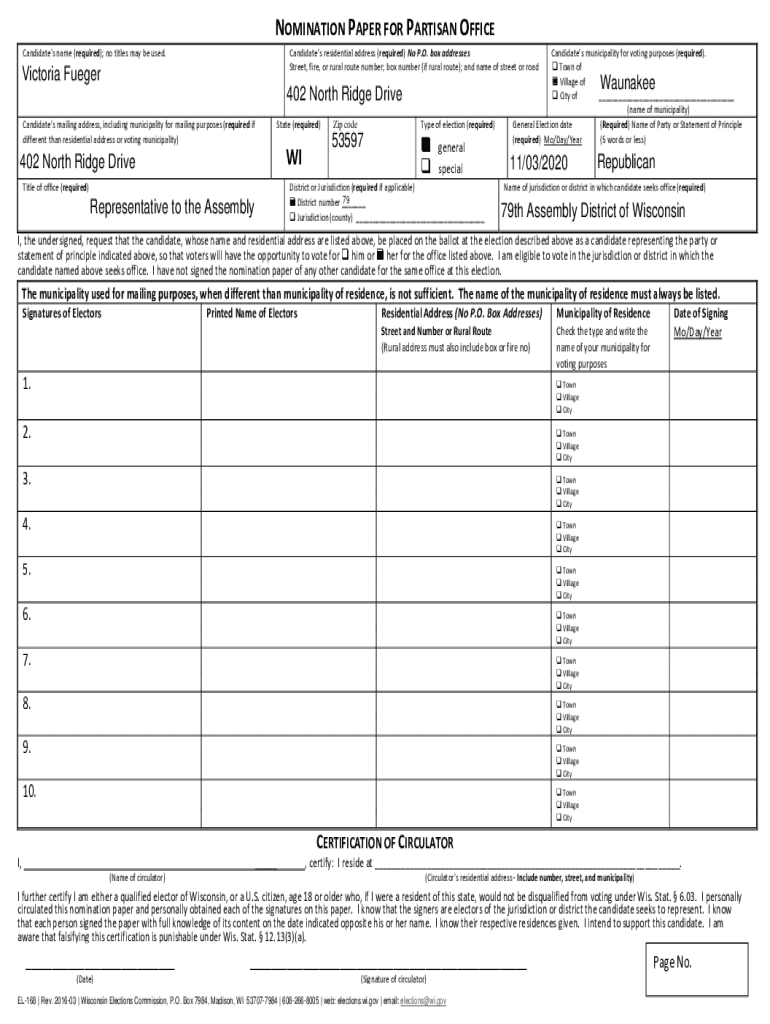 NOMINATION PAPER FOR PARTISAN OFFICE