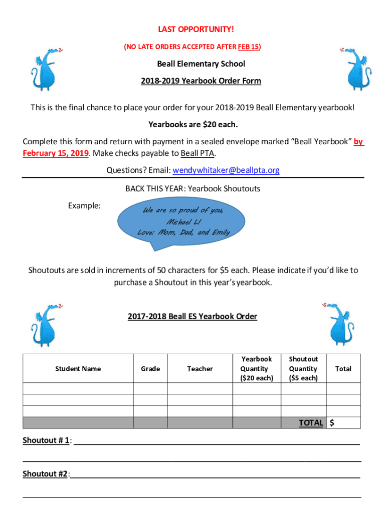 Get the free Beall Elementary School 2018-2019 Yearbook Order Form ...