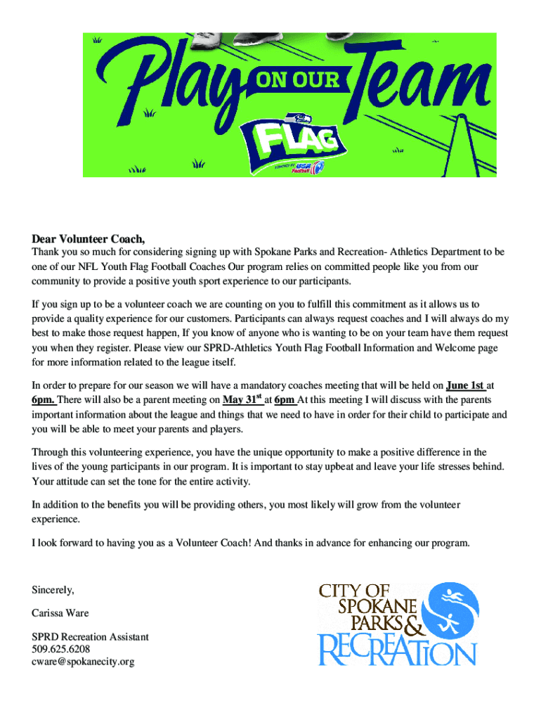 Thank you so much for considering signing up with Spokane Parks and Recreation Athletics Department to be