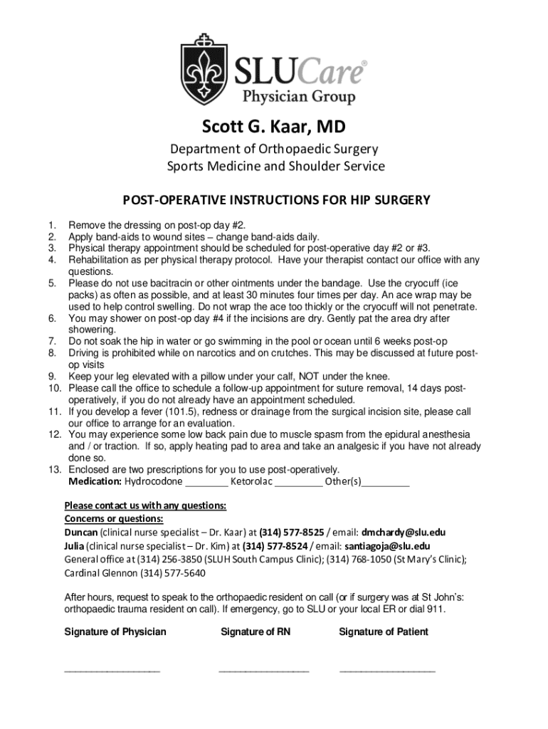 Fill out your hip post-op instructions online with pdfFiller!