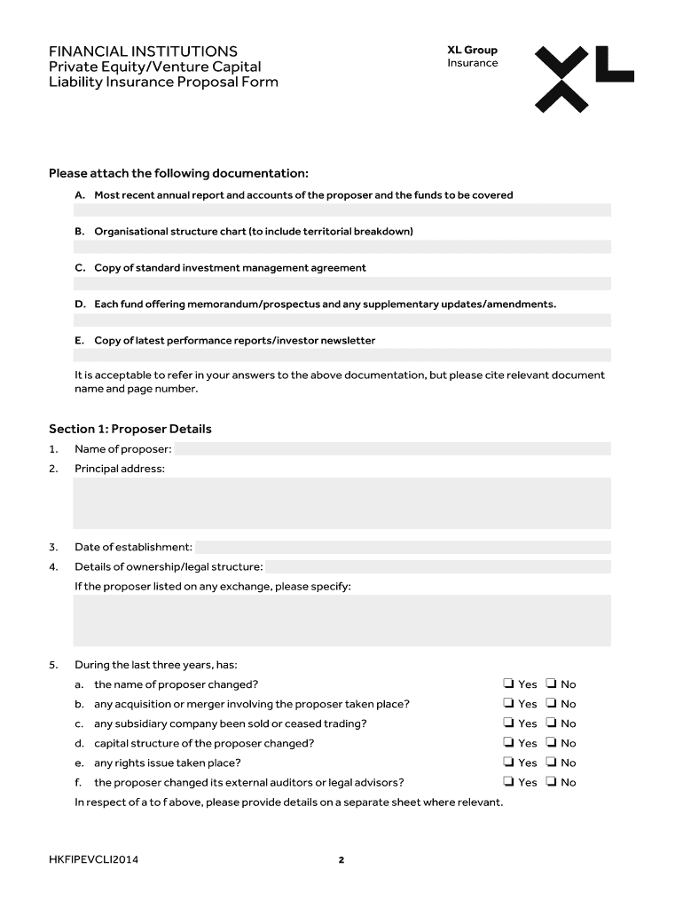 The Liability Insurance Proposal Form can be used by financial institutions, private equity firms, venture capitalists, and any business entities seeking liability insurance coverage.
