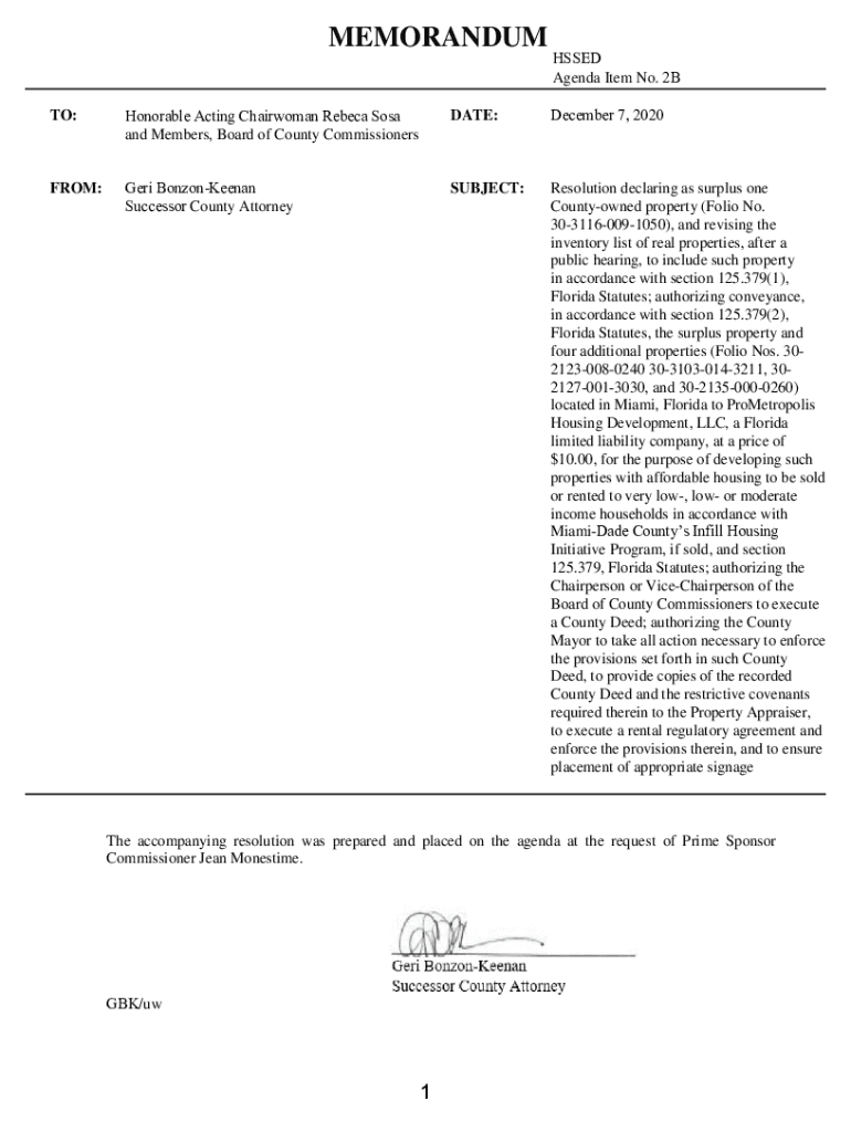 and Members, Board of County CommissionersDATE:December 7, 2020FROM:Germ BonzonKeenan