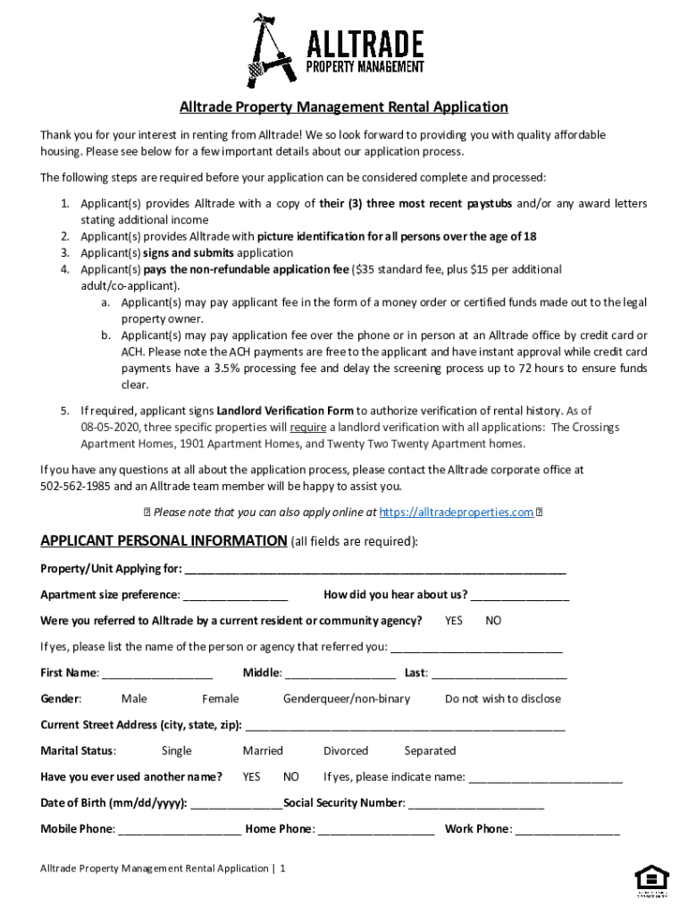 All trade Property Management Rental Application