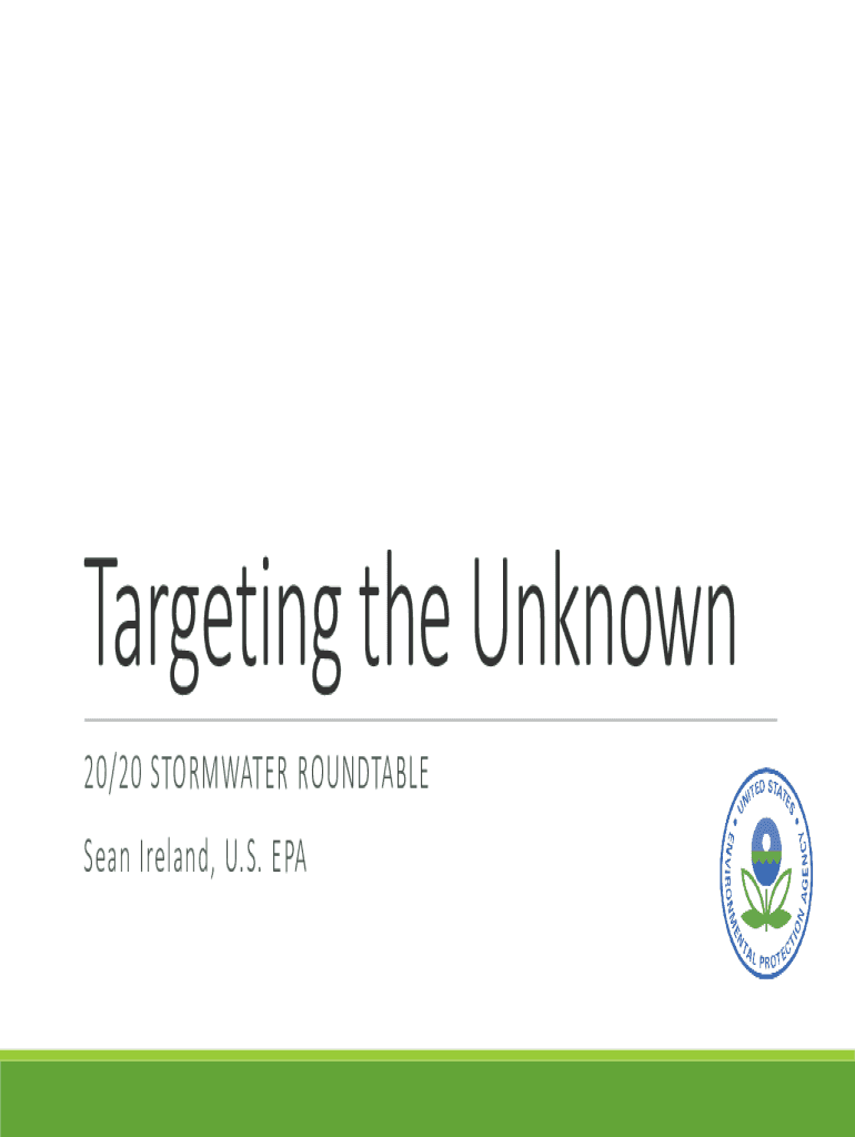 Targeting the Unknown 20/20 STORMWATER ROUNDTABLE Sean Ireland, U.S. EPA Discovery Chattahoochee River keeper 2014 newsletter claimed to have identified 400 facilities without a permit in their watershed