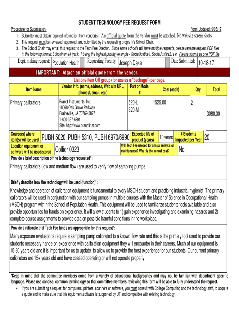 STUDENT TECHNOLOGY FEE REQUEST Postprocedure for Submission: