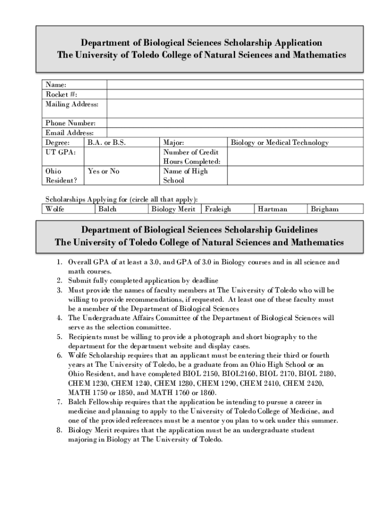 Obtain the necessary forms and documents required for filling out the department of biological sciences.