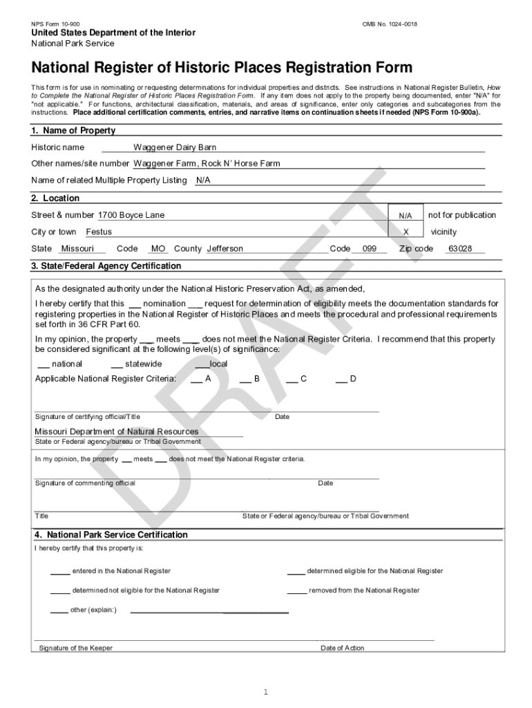 NPS Form 10900OMB No. 10240018United States Department of the Interior National Park ServiceNational Register of Historic Places Registration Form This form is for use in nominating or requesting