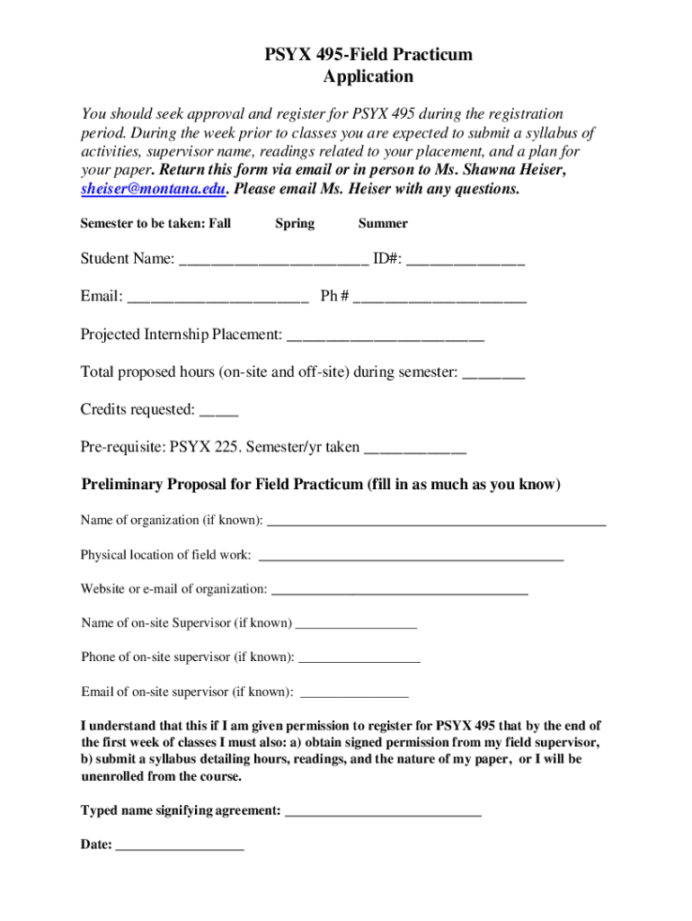 Get the free 495 Field PracApplication