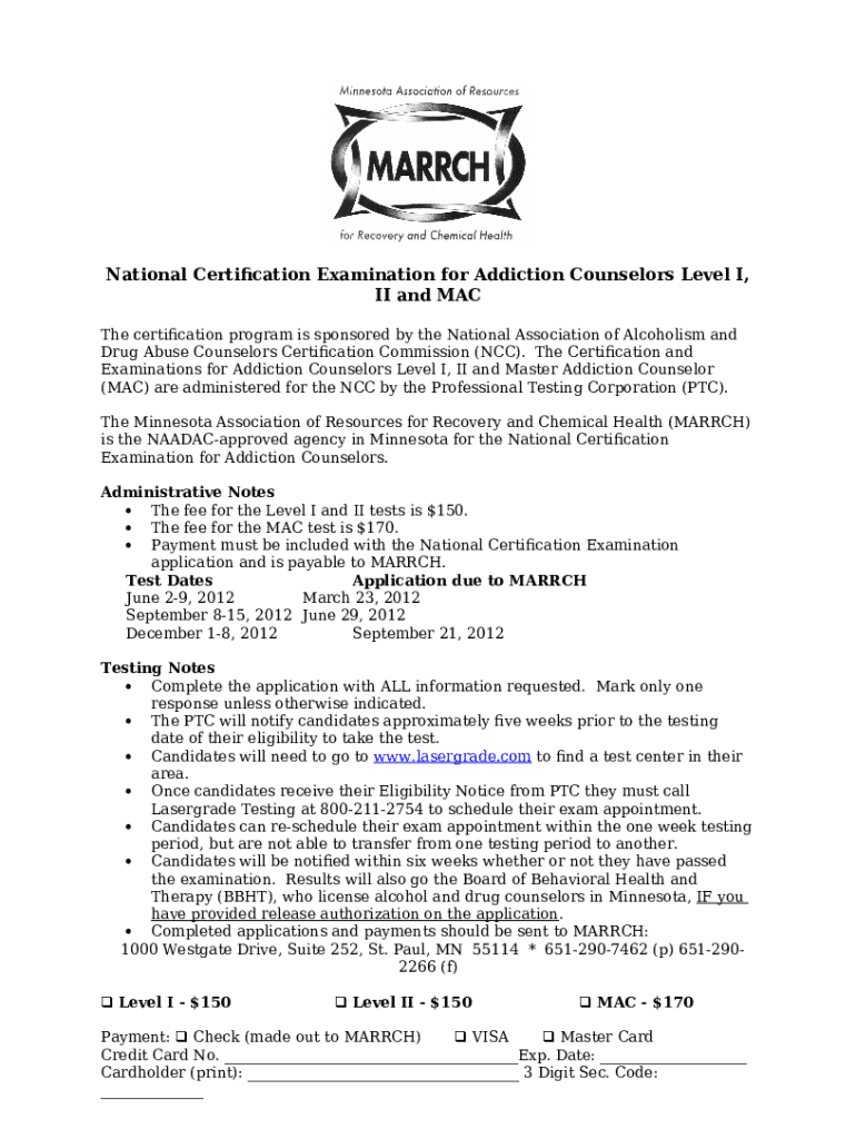 Instructions for the National Certification Examination for Addiction Counselors ... form