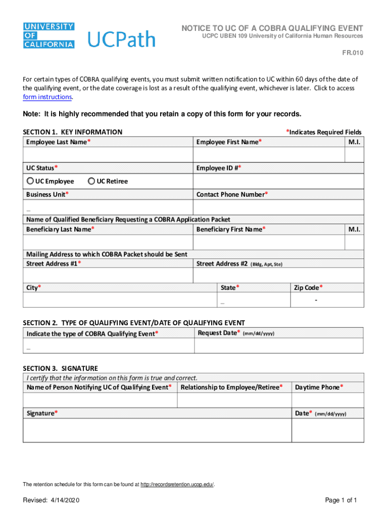 Get the free FR.010 - Notice to UC of a COBRA Qualifying Event (UCPath ...