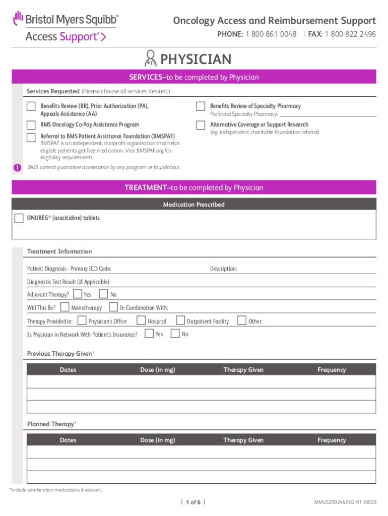 Oncology Access and Reimbursement Support PHONE: 18008610048 FAX: 18008222496PHYSICIAN SERVICES to be completed by Physician Services Requested (Please choose all services desired.) Benefits Review
