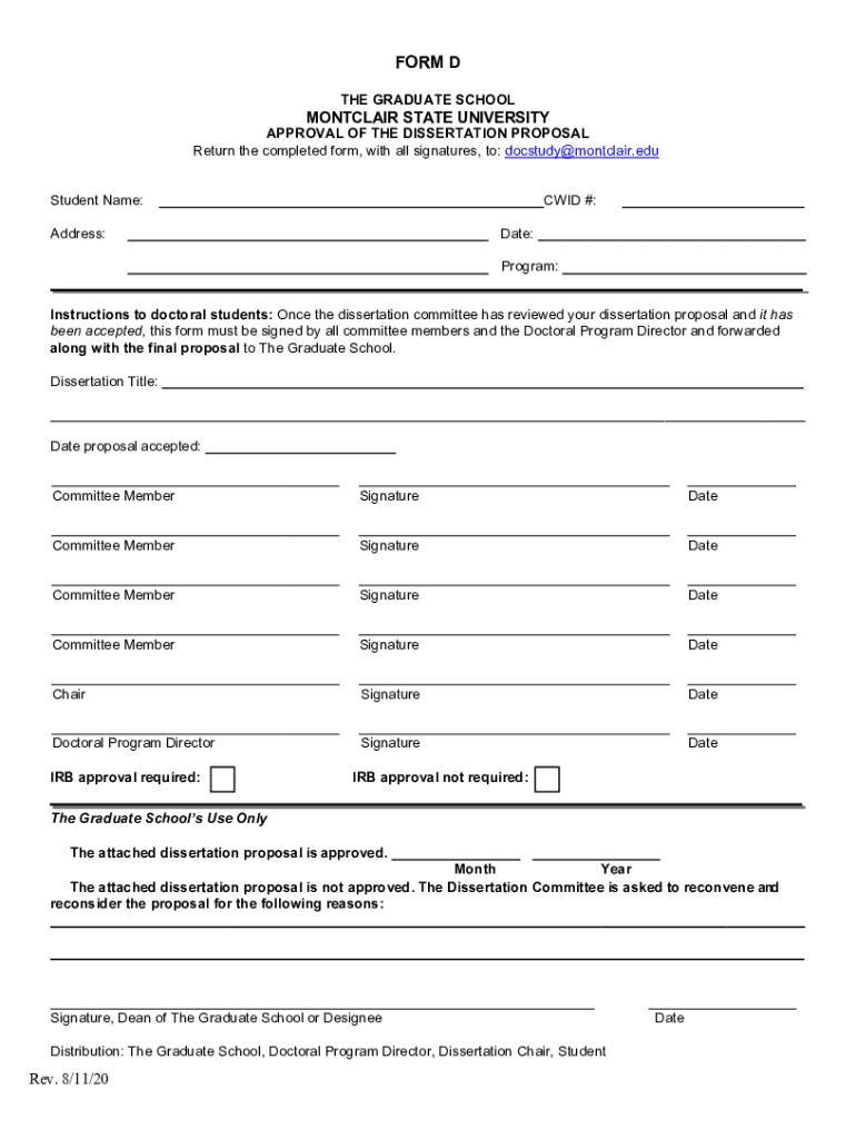Get the free Form D - Montclair State University