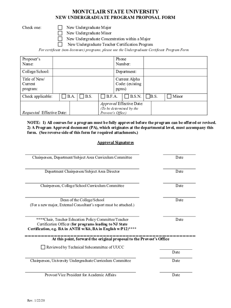 Get the free New Undergraduate Program Proposal Form - Montclair State ...