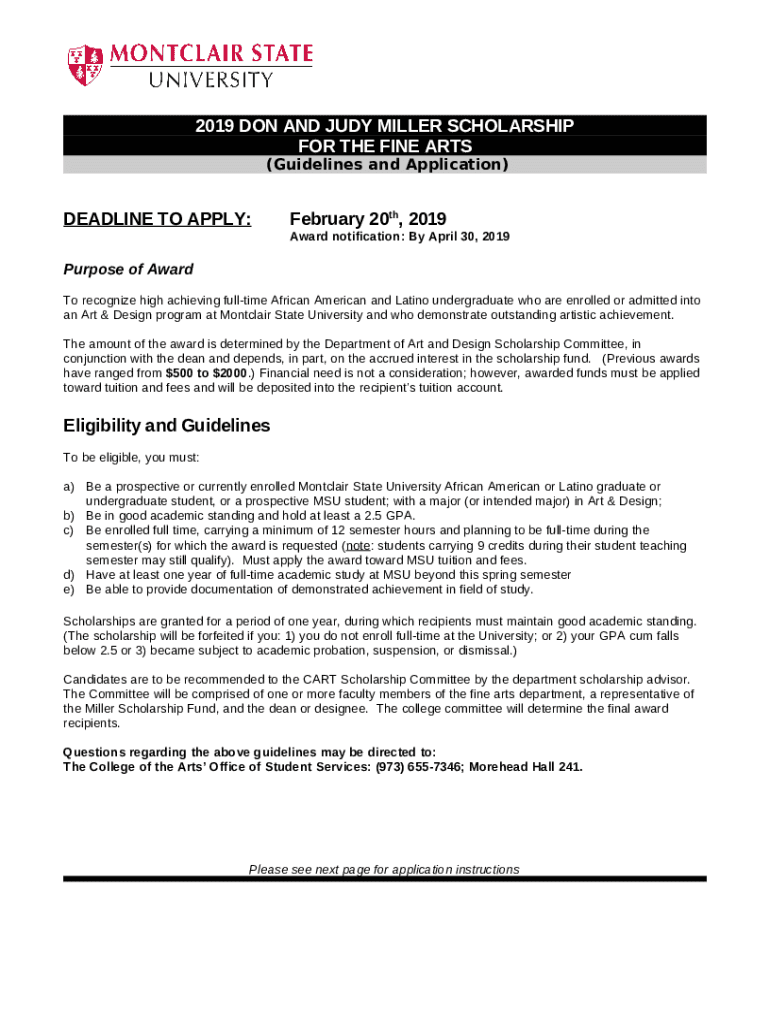 How to fill out 2019 don and judy miller scholarship for the fine arts