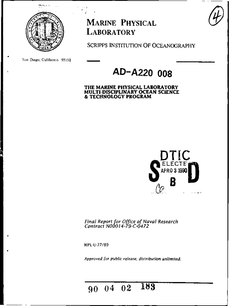 Ir 0XMARINE PHYSICAL LABORATORY SCRIPTS INSTITUTION OF OCEANOGRAPHY San Diego, California 92152ADA220 008 THE MARINE PHYSICAL LABORATORY MULTIDISCIPLINARY OCEAN SCIENCE & TECHNOLOGY PROGRAMMATIC E