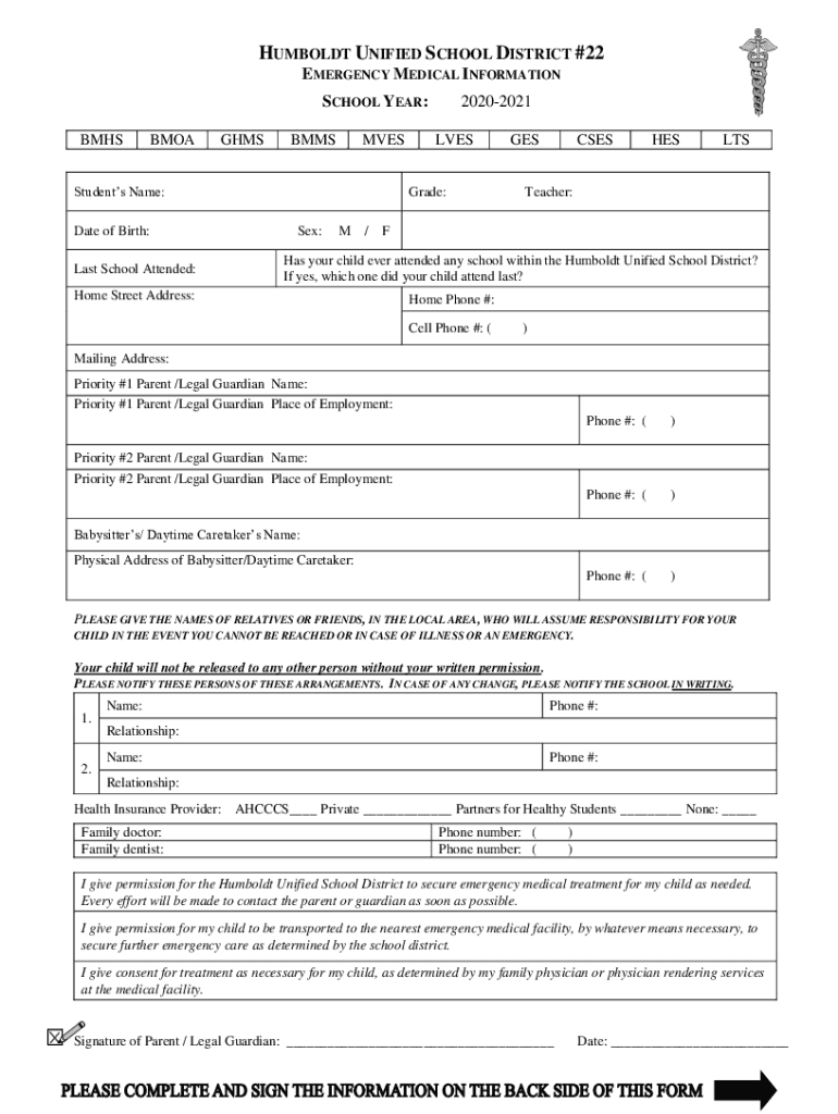 Get the free English- 2020 HUSD Emergency Medical Information EMI Form-1 ...