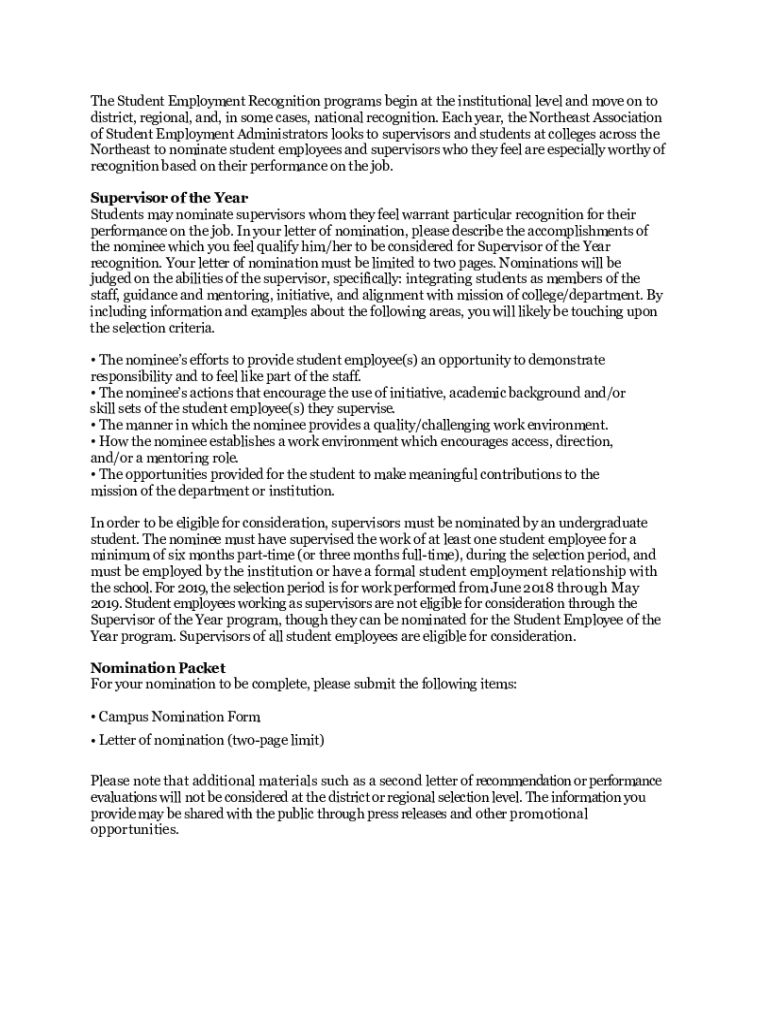 The Student Employment Recognition programs begin at the institutional level and move on to