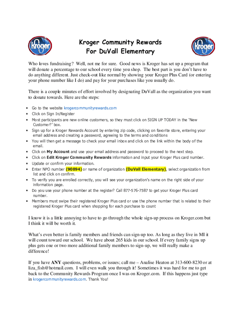 Get the free Kroger Community Rewards For DuVall Elementary - iBlog Teacher ...