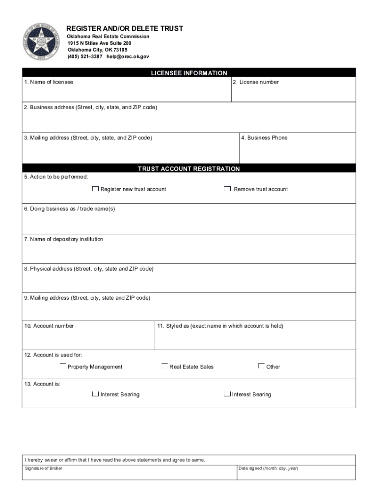 Get the free Register and or Delete Trust Account