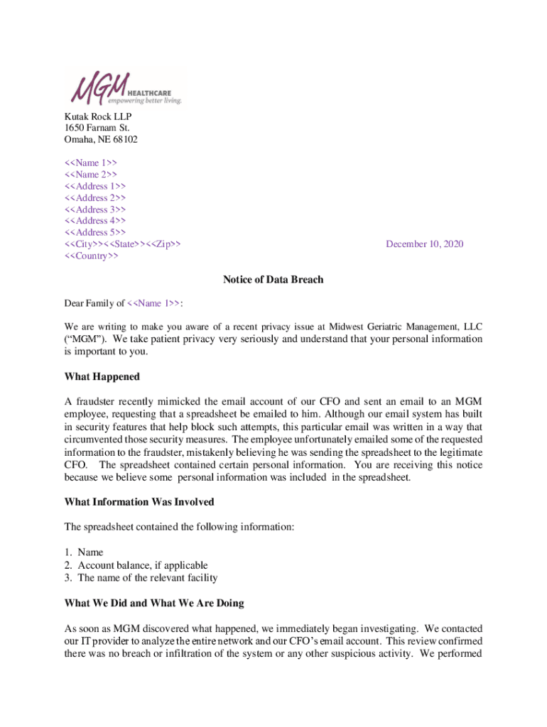 Provide guidance to affected individuals on what they should do to protect their personal information, such as changing passwords or monitoring financial accounts.