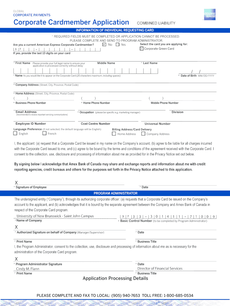 Edit your amex corporate cardmember application form online