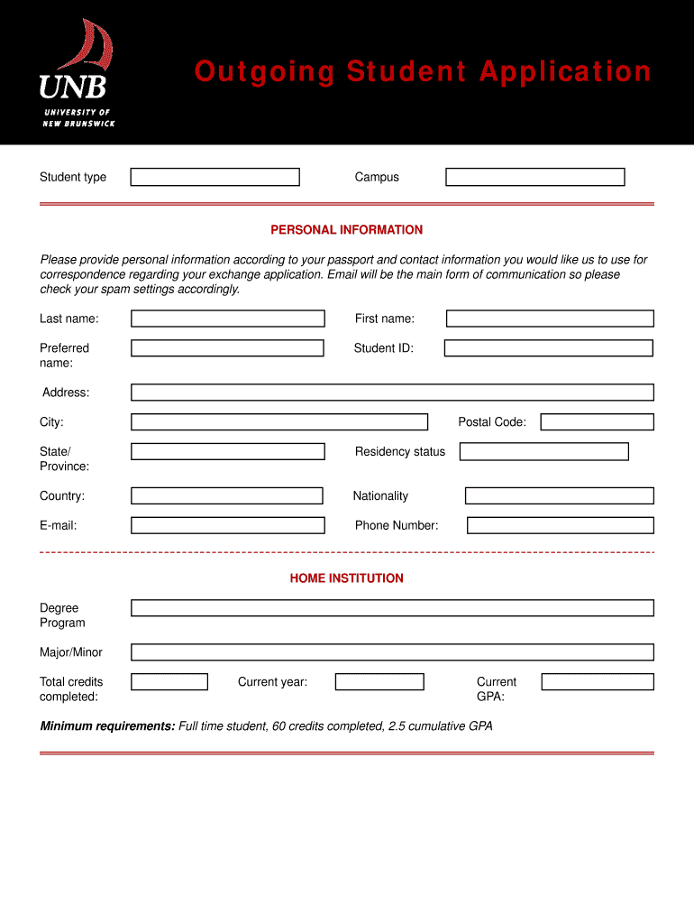 Get the free Outgoing Student Application - University of New Brunswick