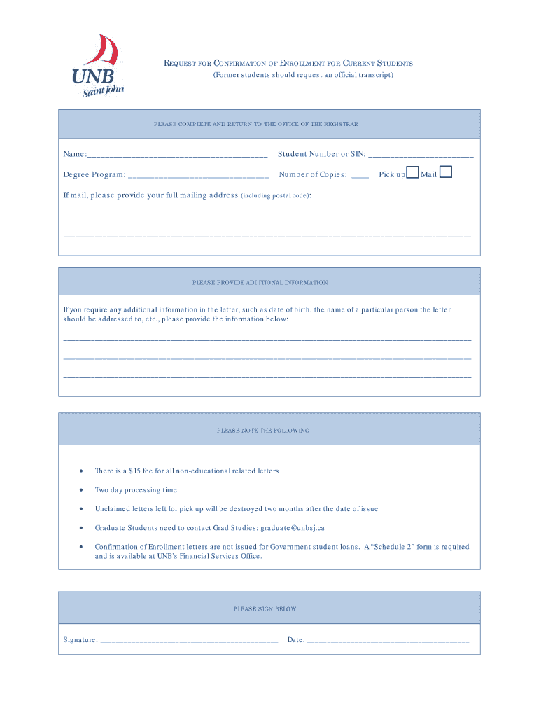 Get the free Request for Confirmation of Enrollment for Current Students