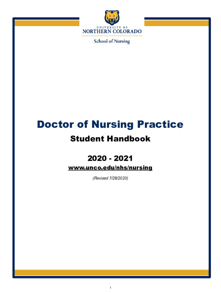 Doctor of Nursing Practice Student Handbook 2020 2021www.unco.edu/nhs/nursing (Revised 7/28/2020)1 Please note: The Official Handbook will be updated on a regular basis and the most recent version
