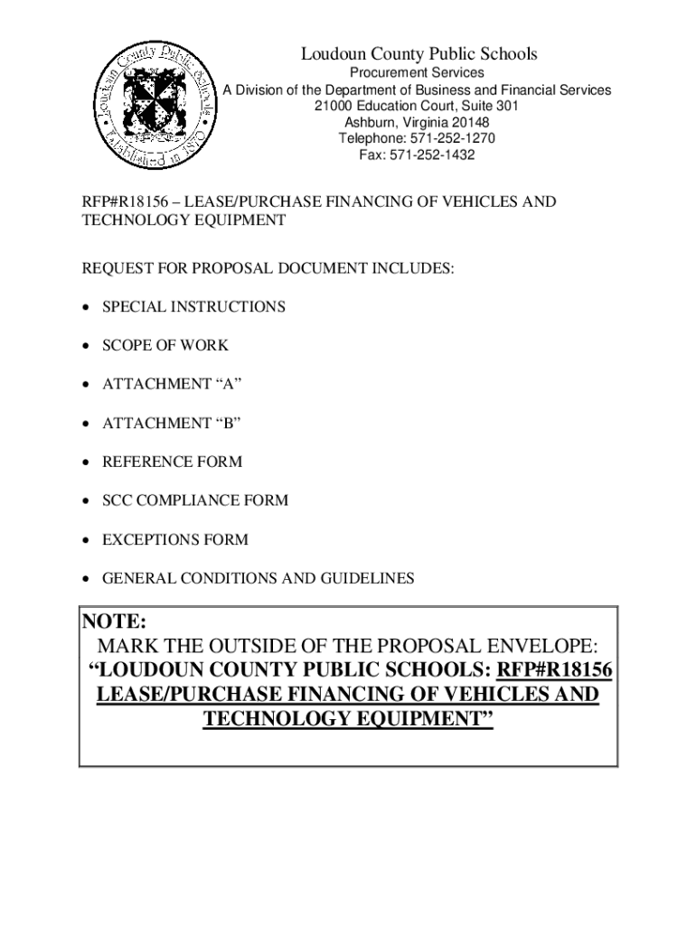 Get the free RFP R18156 Lease Purchase Financing due 6-8-12 at 2 PM.docx