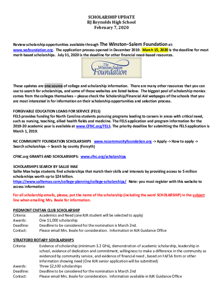 February 7, 2020Review scholarship opportunities available through The Winston-Salem Foundation at: