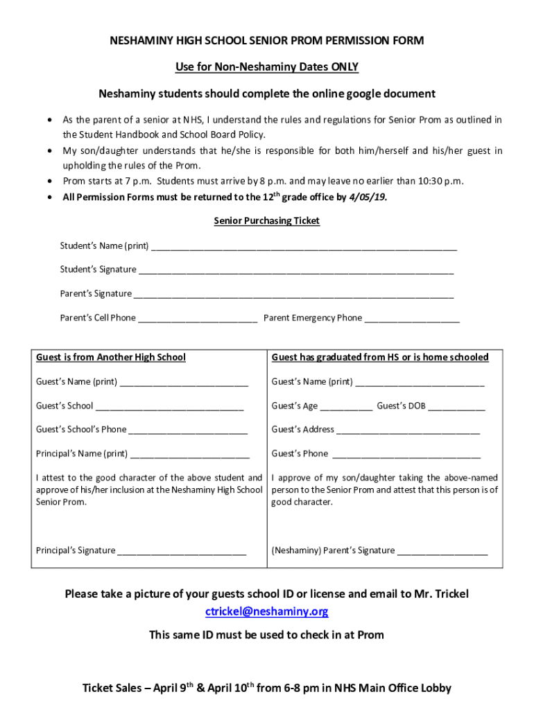 RESHAPING HIGH SCHOOL SENIOR PROM PERMISSION FORM Use for NonNeshaminy Dates ONLY Reshaping students should complete the online Google document As the parent of a senior at NHS, I understand the rules