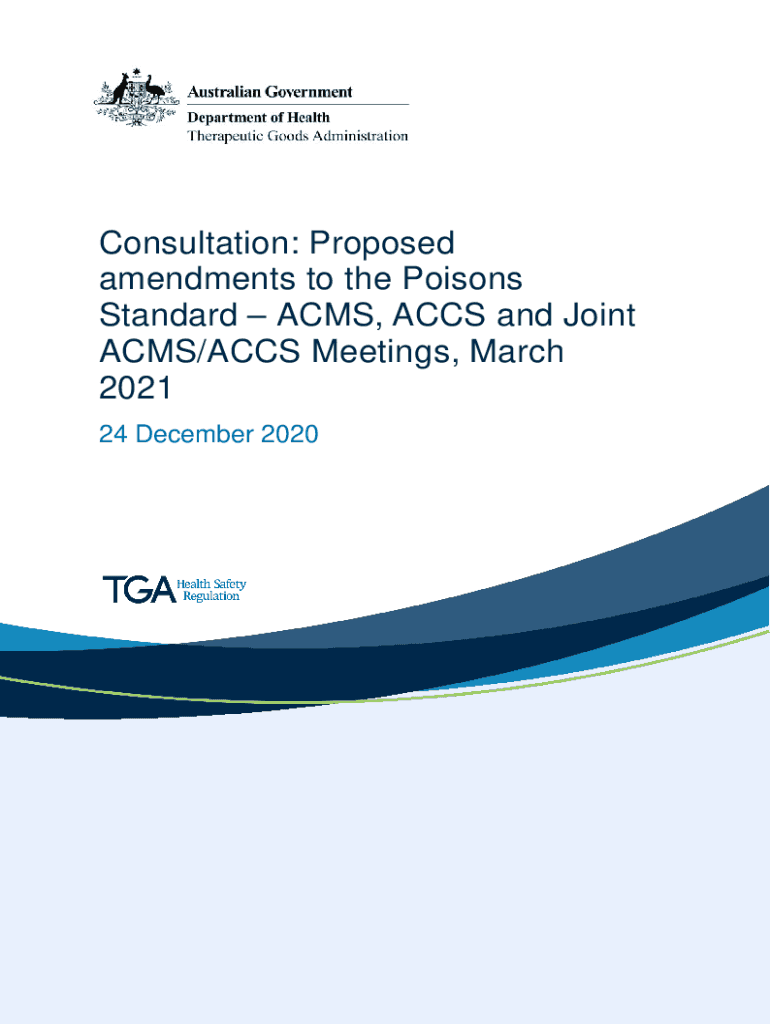 Consultation: Proposed amendments to the Poisons Standard ACMs, ACTS and Joint ACMs/ACTS Meetings, March 2021 24 December 2020Therapeutic Goods Administration Copyright Commonwealth of Australia 2020