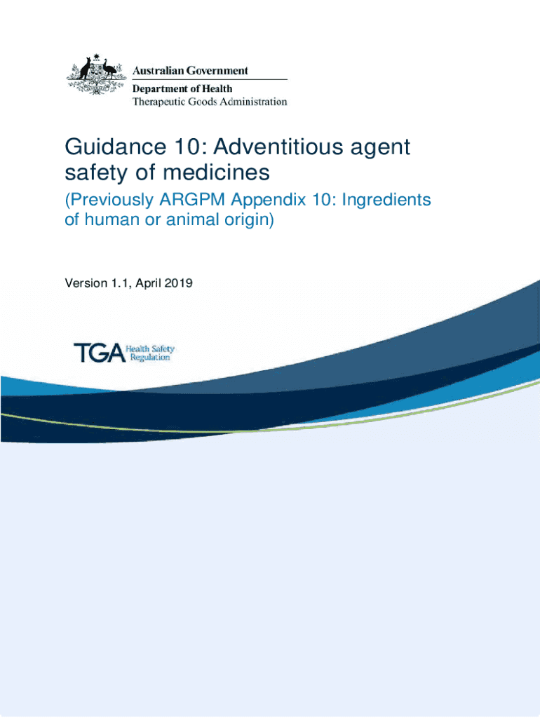 Guidance 10: Adventitious agent safety of medicines (Previously AGPM Appendix 10: Ingredients of human or animal origin)Version 1.1, April 2019Therapeutic Goods AdministrationCopyright Commonwealth
