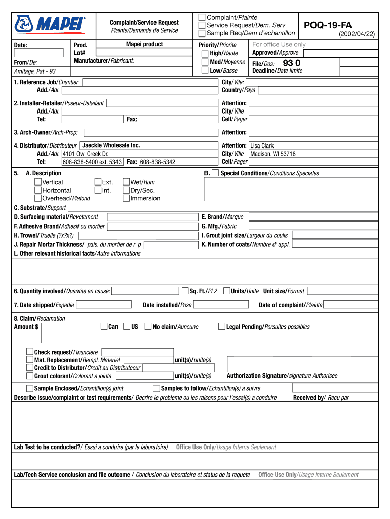 This form is crucial for various professionals and industries, particularly those involved in product distribution and retail. Manufacturers, distributors, and retailers should utilize this form whenever service-related complaints arise to ensure compliance and uphold professional accountability.