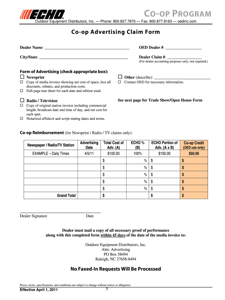 Purpose and Benefits of the Co-op Advertising Claim Form
