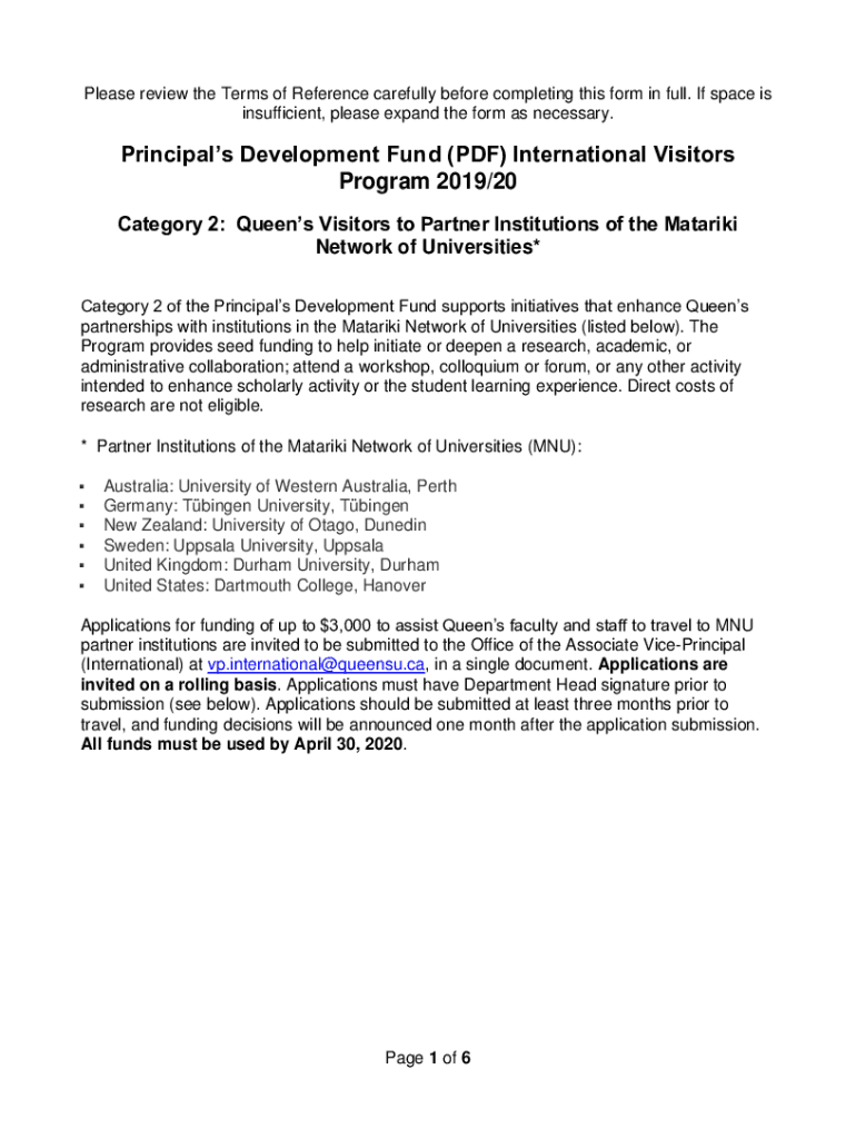 Get the free Principal's Development Fund (PDF) International Visitors ...